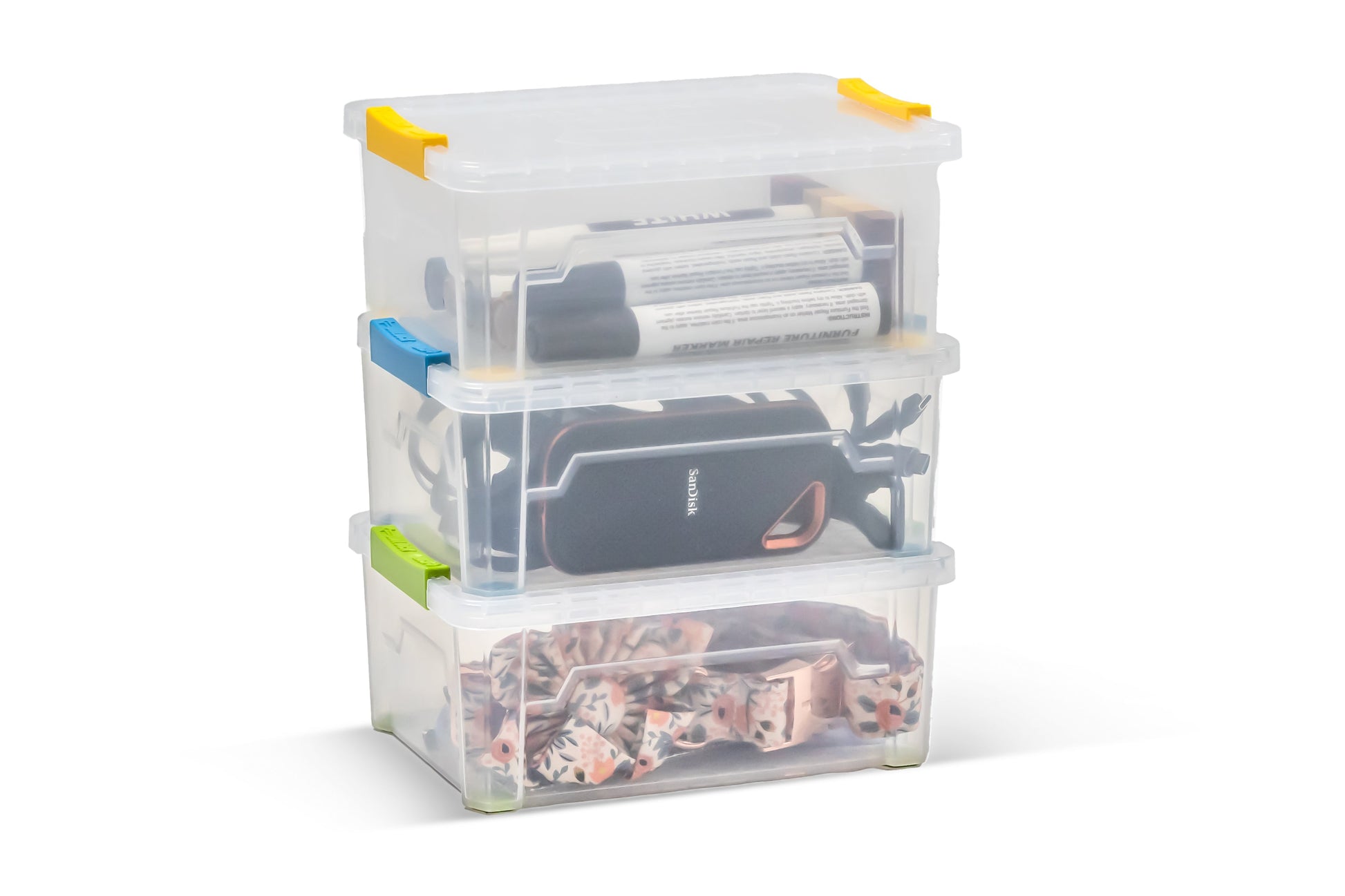 Each Hive Bin is built with durability and efficiency in mind, featuring secure latching, stackable design, and rubber-like feet that keep bins firmly in place. Whether you’re organizing a home office, garage, craft room, or small business supplies, this bundle gives you a versatile system that grows with your needs.