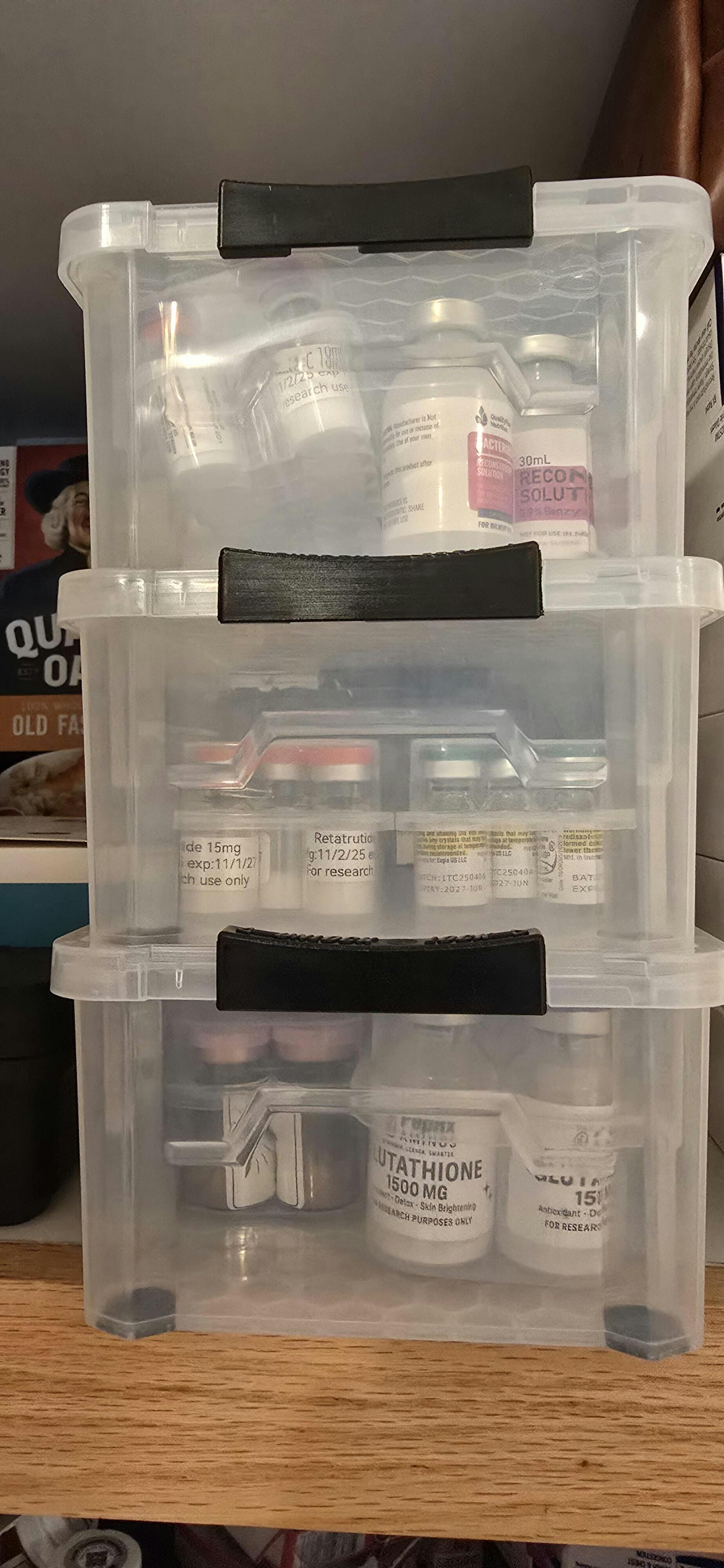 I’m very pleased with the Hive Bin – Stinger Black. The smaller size is perfect for storing peptides and accessories without taking up unnecessary space. They’re easily stackable, which keeps everything organized, and the clear construction makes it simple to see what’s inside at a glance. The build quality is excellent, and I really appreciate that they’re made in the USA. Highly recommend for anyone looking for a clean, efficient storage solution.